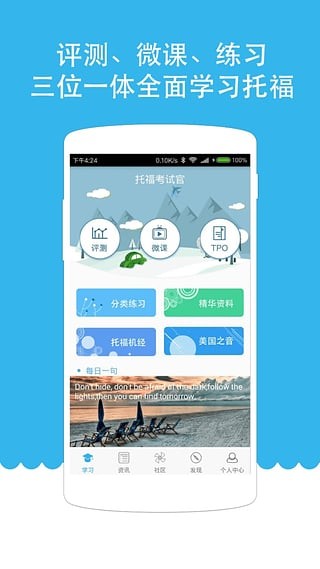 托福考试官app是一款托福考试学习软件,用户通过托福考试官app可以全方位测评托福能力,随时随地高效学习,轻松过考。