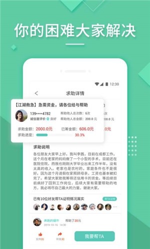 【助朋友】帮朋友解决求助单,自己也可发起求助,生活上遇到了困难都可以发帖相互帮助。公开透明,只需三步,到期随时提现,最快实时到账。