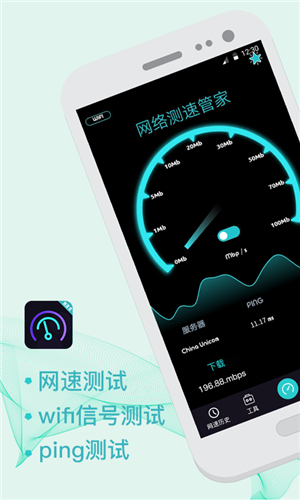 5G测速WIFI测量仪是一款十分优秀的网络测试、Wifi管理、信号测试等多功能与一体的测试工具软件。5G测速WiFi测量仪一键解决手机流量3G,4G,5G或者WIFI网络测速问题。并且并且提供IP的网络延迟PING值的查询功能,信息真实,让您随时随地查看当前网络状态!