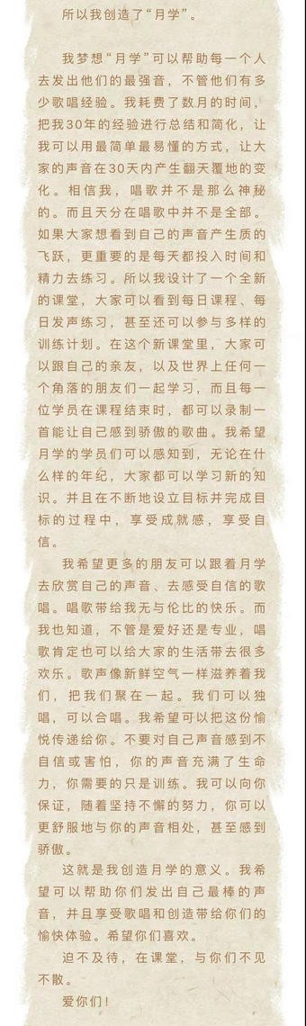 3.在月学安排课程中,你将接受30天的训练,以提升你的歌唱能力。