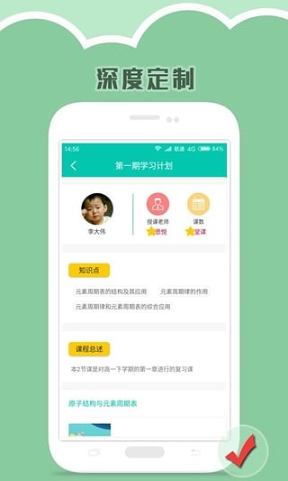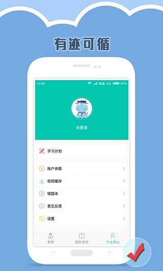 2、app中包含学习计划、教学课件及课程回顾,一目了然;