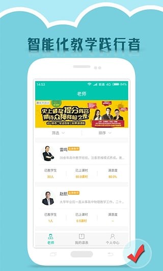 1、随时查询老师个人介绍,视频观看老师授课情况,课时收费清楚透明;