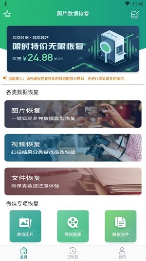 -支持恢复相册误删照片,恢复微信误删照片,QQ误删照片,手机各类应用误删图片。