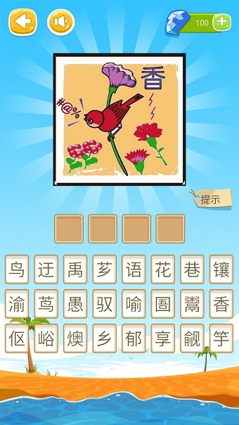 中国的成语博大精深,有些成语你知道但不一定能猜到!想挑战一下自己吗?赶紧动手吧;实在猜不出来就按“提示”吧!