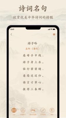 诗歌集是一款好用的古诗词学习软件,精选古诗词内容,诗词鉴赏,可以了解作者生平详情,每天学一首诗词,以诗会友,掌握更多诗词。