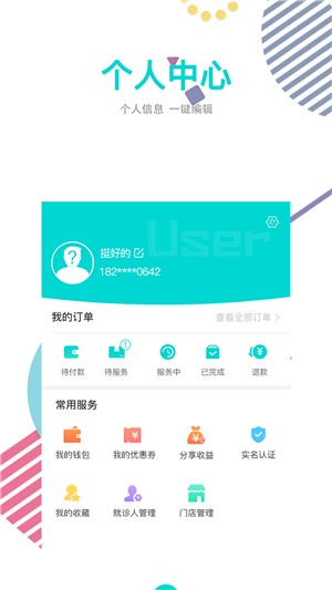 【个人】主要是自己的个人资料及各类订单的状态,以及我们医标好平台的常见问题和联 系方式等。