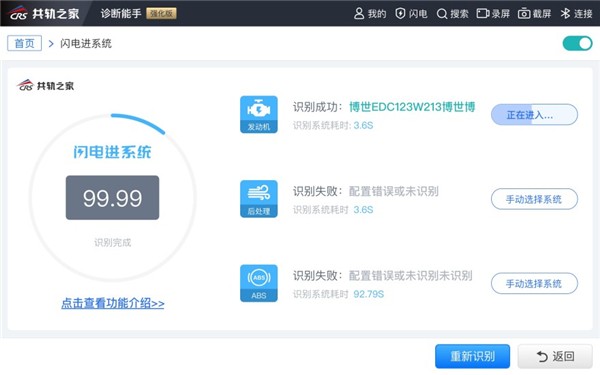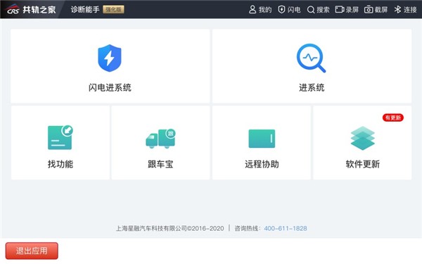 诊断能手主要功能有闪电进系统,不用复杂地选择系统分类,一键即可进入系统。其他诸如故障码、数据流和刷写等功能帮助用户快速定位问题,解决问题。