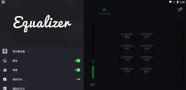 打开均衡器和低音助推器应用程序,调整音量和频率。