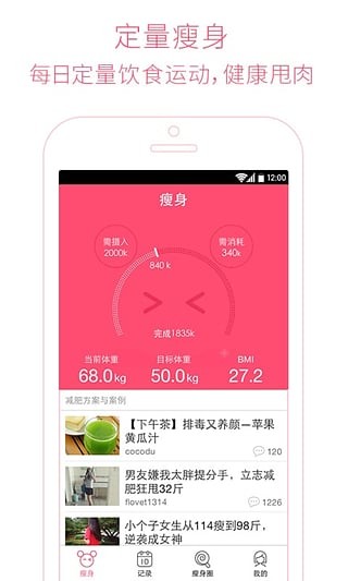 在这里,志同道合的伙伴和你相互勉励,变身成功的妹纸与你分享减肥方案,在这里,减肥不再是一个人的坚持。