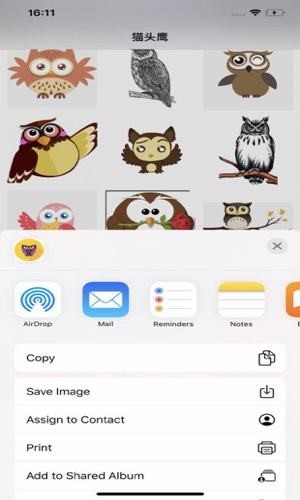 3、让我们一起使用并分享猫头鹰的贴纸吧,安装到手机一点也不占内存。