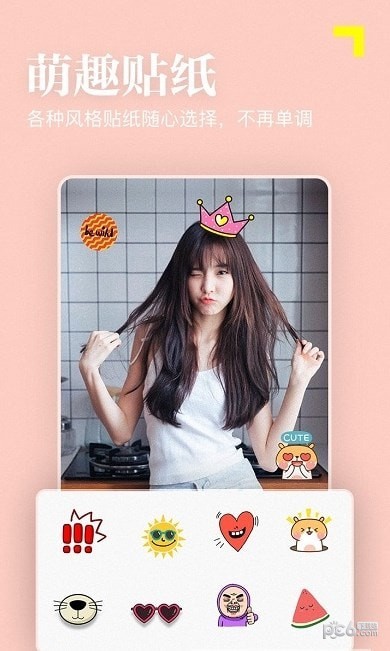 3、所有的滤镜以及贴纸素材都是免费提供的,简单易操作的手机相机工具。