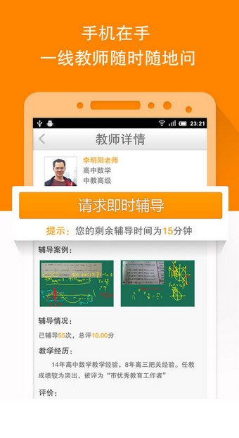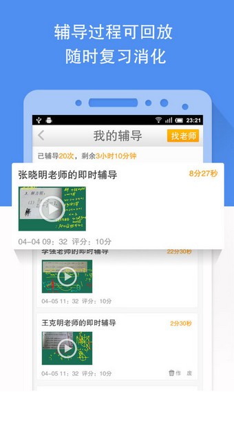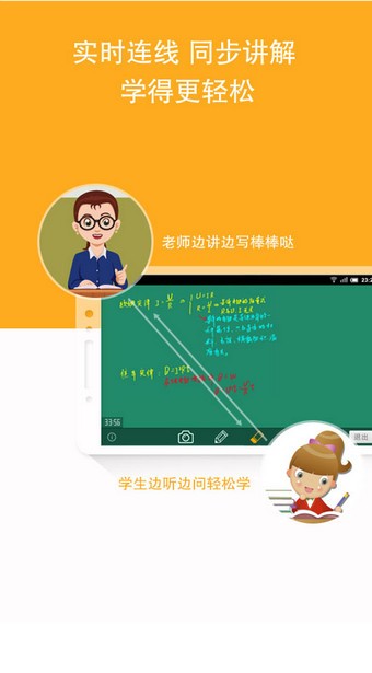 2、即时辅导学习:中小学生可随时随地连线真人老师一对一辅导学习,5秒连线,老师通过语音+白板为学生答疑解惑,作业答疑、学习辅导全程在答疑白板界面体现。每一个笔划,学生都能实时看到。针对学习重点难点,师生还可随时语音交流,让解题思路一目了然。