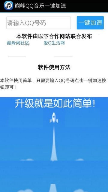 1、巅峰QQ音乐一键加速是一款自巅峰社区最新制作的秒加速免费的QQ音乐一键完成加速的软件,操作方便简单;