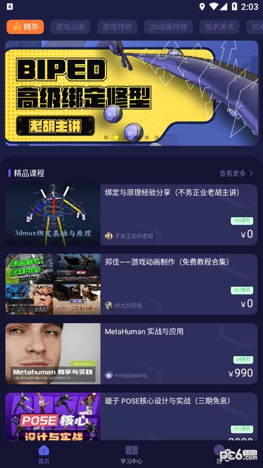 CGJOY课堂APP,提供游戏美术各环节制作课程,尤其擅长游戏动画、游戏特效环节,