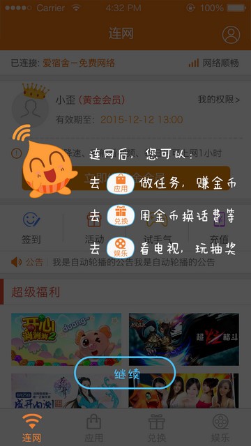 做任务赚金币,延长上网时间