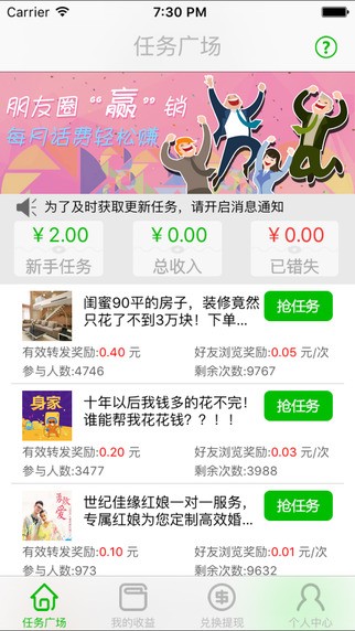 为用户提供阅读资讯、代言资讯并赚钱的服务,