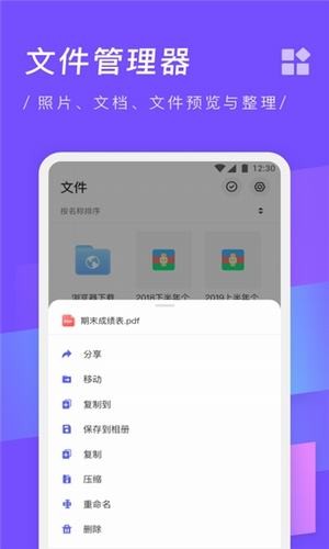 3.文件管理:将手机上的图片视频和文件集合在一起预览、整理;同时支持从本地文件系统中添加文件;
