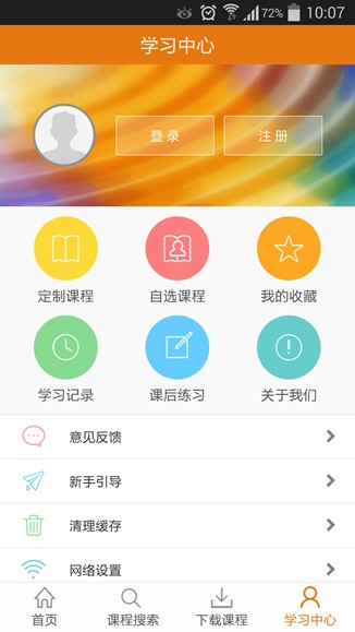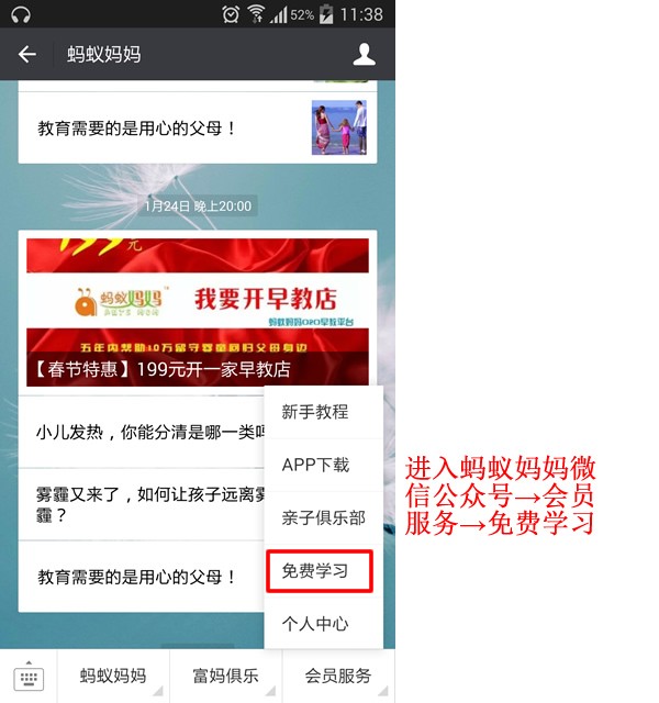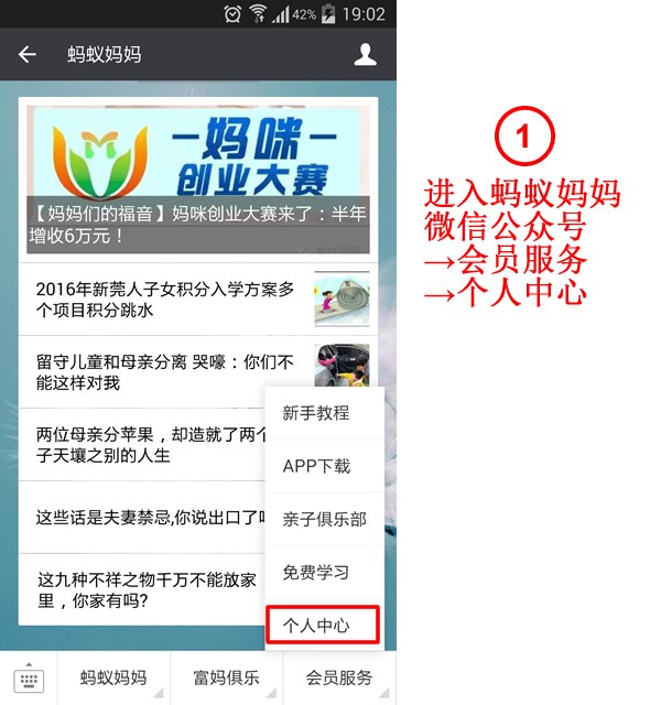 1、进入蚂蚁妈妈APP主界面,点击学习中心登陆帐号密码(无需在APP注册)(温馨提示:帐号类型是m+手机号码,如 m137********,蚂蚁妈妈微信公众号个人中心设置密码)