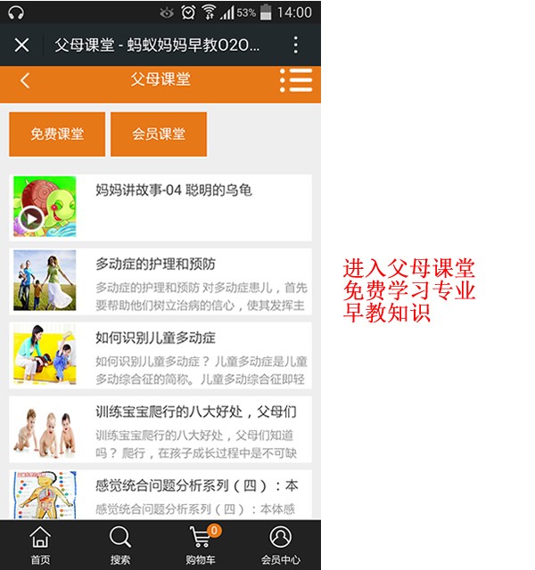 免费课程学习中心主要以入门级理论文字学习资料为主,涵盖了早教、母婴护理、营养保健等专业内容