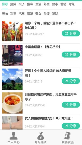 为你提供了海量优秀的文章内容,用户可以选择感兴趣的文章一键分享到社交圈获取奖励,邀请好友加入还可以得到更多的奖励。