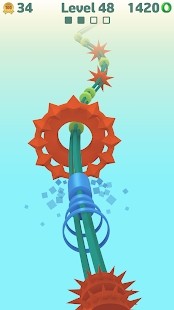 滑环骑士游戏中玩家要在螺旋塔内勇往直前,不要碰到那些贱贱的障碍物,按住屏幕往上走,松手即可稍微休息,你得身手敏捷一些,别被台阶坑了,摔下去找不到!