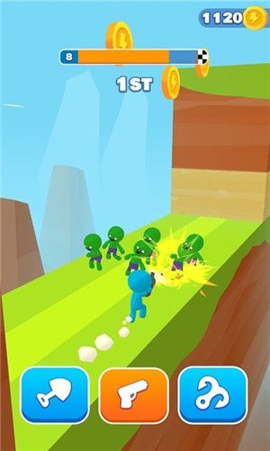 动作跑步比赛是一款非常考验玩家反应能力的休闲闯关游戏,在动作跑步比赛这款简洁其实充满乐趣的游戏中玩家将要控制角色面对不同的关卡困难选择合适的方式进行应对,帮助自己更快更顺利的到达终点完成关卡挑战。