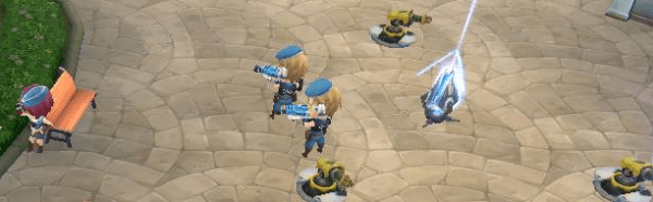 攻击冰冻中的目标时,暴击率100%,副本中会有NPC(下图蓝色帽子NPC及固定炮台)协助进行冰冻,没有冰冻的武器也顺利通关。
