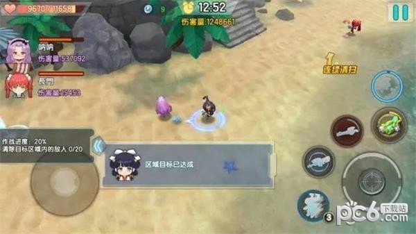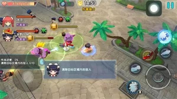 类似于闯关模式,地图较大,现版本主要有两种地图(街道开局和沙滩开局)。副本由三人合作完成,共需要击杀约5波敌人,即可通关。