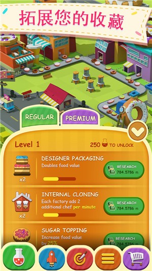 甜甜圈工厂游戏是一款最新推出的一款卡通风趣味经营类游戏,它的玩法也是相当的简单,玩家在游戏中要不断售卖甜甜圈,新品种的研究会让你更加方便获得利润。