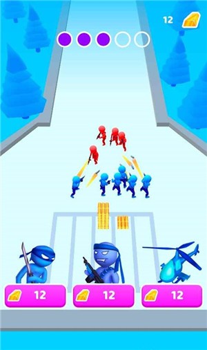 红蓝火柴人军团对战是一款很好上手的解压玩法相对轻松的策略战斗游戏,红蓝火柴人军团对战游戏中拥有三个兵种,兵种是相克的,你需要通过敌人的阵容进行选择,红蓝火柴人军团对战中玩家可以通过战斗获得更多的金条解锁更高级的士兵帮助你战斗,更多冒险等你来挑战。
