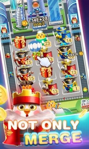 1、通过合成还能升级进化,玩法休闲简单,趣味的放置养鸡场十分欢乐