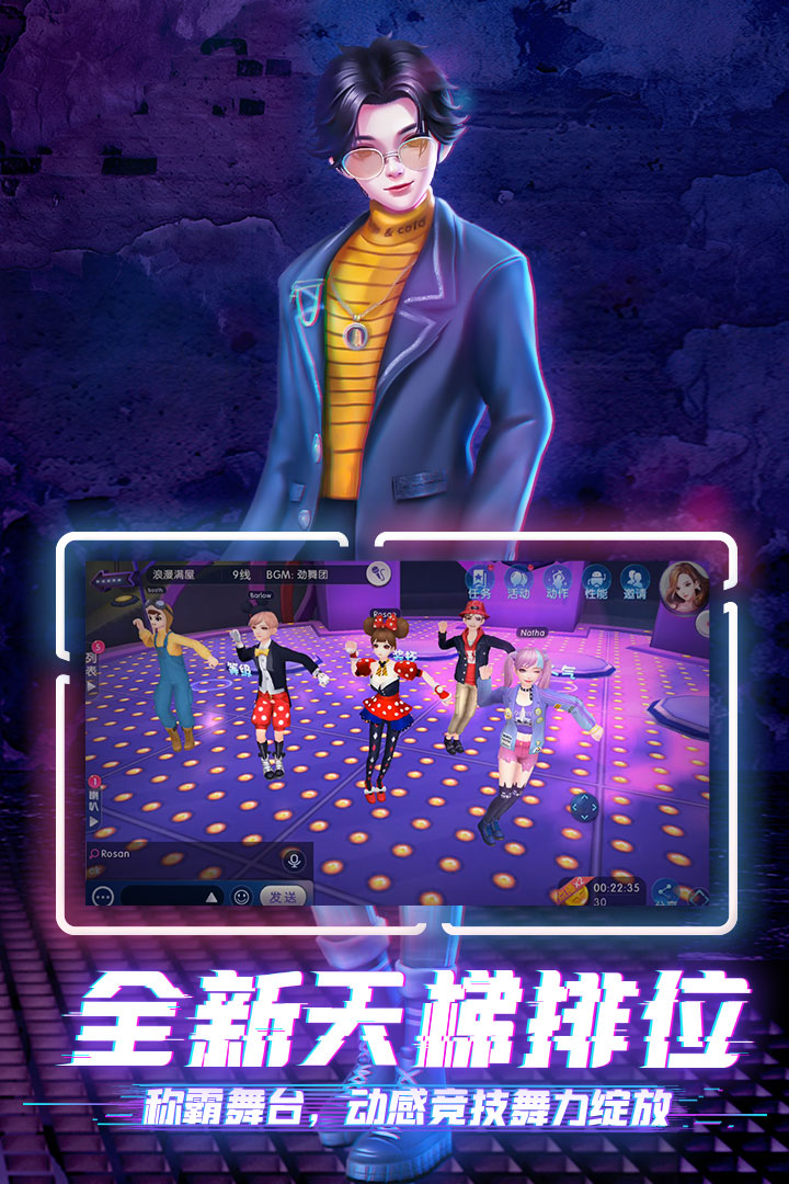 情缘模式双人共舞,50人同屏广场派对,LBS定位同城伙伴,舞团家族竞技斗舞,丰富社交设计,劲舞只为与TA相遇~