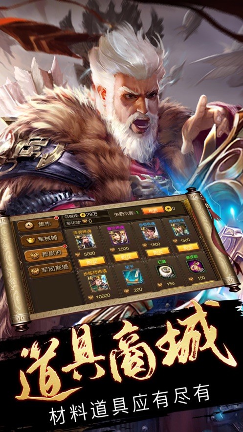 3、道具商城,应有尽有-道具商城助力战力培养,无论是武将、升阶还是装备都是触手可及。