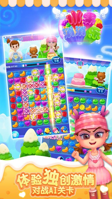 富有挑战性的闯关地图、梦幻甜美的糖果风格、丰富趣味的音效,爽快流畅的手感,以及独创的微策略消除玩法,带给玩家最高品质的休闲互动体验。