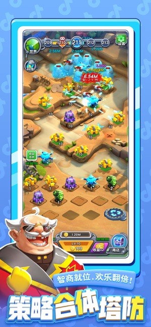2.合并升级炮塔,有策略的搭配各类炮塔,抵抗不同的敌人。