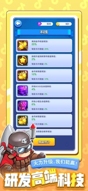 数以千计的关卡设计各具挑战,无限升级成长抵挡更强的敌人。