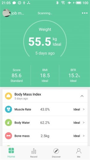 轻康app通过蓝牙4.0将您的iOS设备和支持蓝牙的体脂秤连接在一起,让您可以通过APP查看身体健康指标(例如,体重,BMI,肌肉,水,蛋白质,内脏脂肪,骨量等)。
