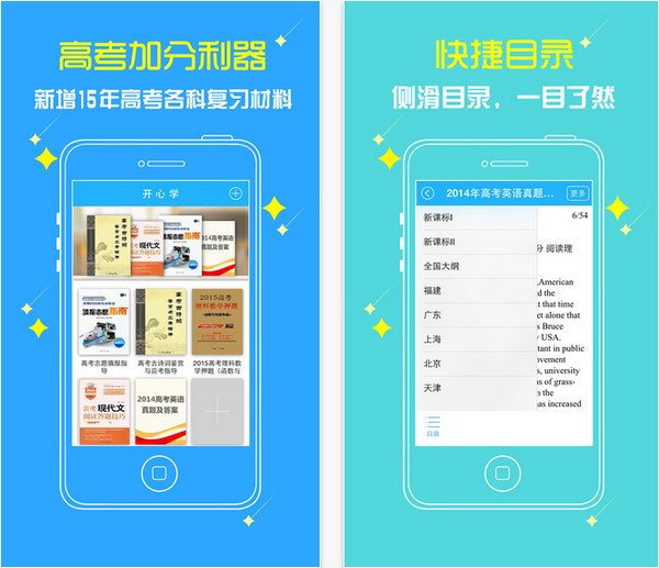 开心学app是一款权威详细的初高中课程知识重点学习的手机应用软件。在开心学app中你可以找到初高中所有科目的重点和课后复习题,是你学习必备的好助手,同时开心学app中还有诸多中高考真题让你联系,不要错过哦!