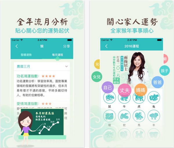 雨扬居士2016生肖运程app是由资深媒体命理大师雨扬居士倾力指导的一款生肖运程解析软件。2015年羊年已过,2016年猴年将近,许多朋友都希望是顺风顺水的一年,雨扬居士2016生肖运程app给您最精准合理的运势推演,为您趋吉避凶,让你新的一年流年大吉!需要的朋友快来下载吧!