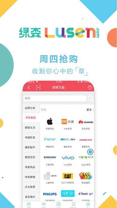 3C数码、奢侈箱包、品牌名表、服装鞋帽、运动香水、家用电器、手机数码一应俱全,满足不同人群的购物需求,让你轻轻一点买你所想。