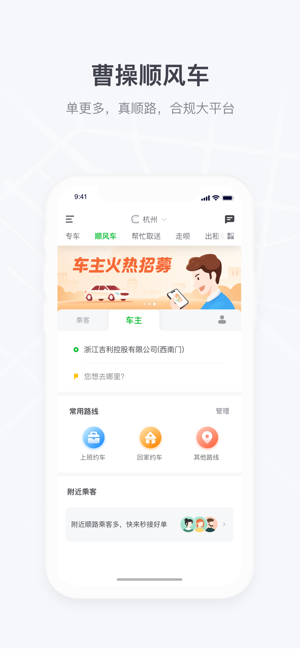 曹操顺风车通过平台与私家车主和出行用户建立全面链接,通过严格的车主筛选制度、全程安全保障措施、流畅的产品体验,为用户提供更加安全、舒适、经济、便捷的共享出行服务,同时为城市道路交通减负贡献一份力量。