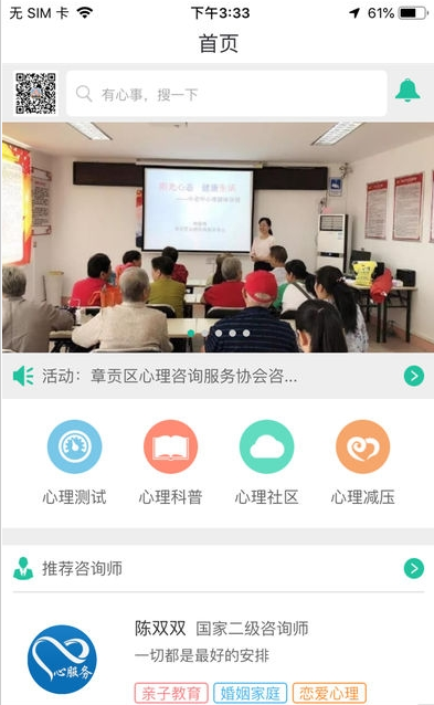 章贡心服务ios版的宗旨就是用心解决您的烦恼,解忧就上心服务,章贡心服务app可以帮助用户进行一些心理健康方面的咨询服务。