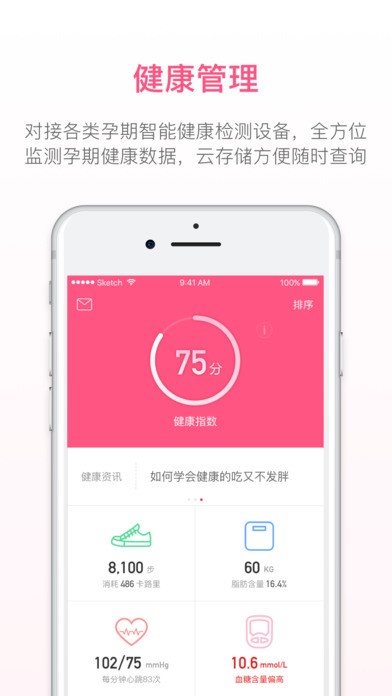 “孕贝安”作为国内首个权威的孕期健康管理平台,可同时支持血糖仪、血压计、体温计、胎心仪、运动手环等智能设备的数据对接、上传,最大程度满足孕妈妈们孕期身体健康管理的需要,守护孕妈妈顺利度过孕期,成功孕育健康宝宝。