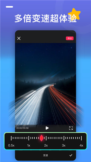 【视频变速】0.5倍、1倍、1.5倍、2倍速等多种选择,快速调整视频的时间长短;