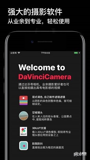 DaVinciCamera使业余摄影爱好者能摄制出如同电影般画面的视频,也让专业摄影爱好者能直接使用移动设备进行高级的调色。