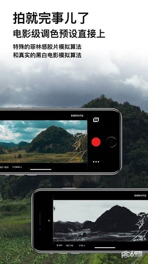使用预设的胶片电影调色系统和2.35 : 1画幅,使您的设备拍出来的画面很有质感。