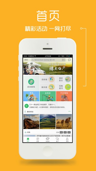 主要为自驾游提供酒店,门票与线路,达人攻略,私人定制化的线路。关注全国有名俱乐部,分享图片,攻略。做到自由自在旅行!