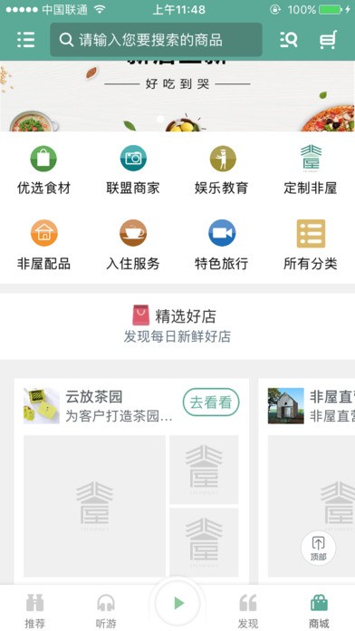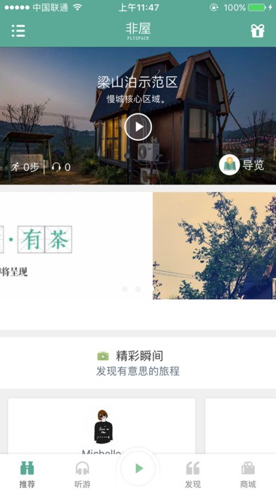 非屋会用户端集成了智能语音导游,社交互动专区,电商平台等旅游周边游互联网+产品。用户可通过终端智能旅游的同时可发布心情,日志,说说等社交体会,和其他用户互动,同时可在线购买周边特产。
