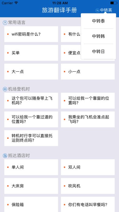 旅游翻译手册现已支持中文、英语、日语、汉语、泰语等最常用语言翻译。