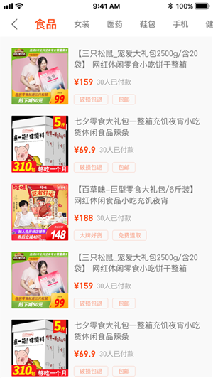 【更多品类】食品、女装、医药、鞋包、手机、健康、母婴等种类繁多满足你所有的需求。